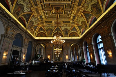 Another half-forgotten gem is the Lotz Hall in the Paris Department Store (Párizsi Nagy Áruház), commonly known today as the Alexandra Book Cafe. This glorious open-plan Neo-Renaissance building is located on Andrássy út (Andrássy Avenue), one of Budapest’s luxurious shopping streets; built in 1884, once housing a casino, a ballroom and 2 luxury apartments, it was and still is magnificent. After a fire almost completely consumed it, it was restored and became Hungary’s first modern department store. After surviving World War II, it was nationalised and became quite run down (like so many of its brethren); the neglect during the communist regime, the owner changes all took their toll before it was finally refurbished. Today it home to a bookstore and, hidden in the Lotz Hall on the first floor, a cafe. The interior design is art deco with original frescos, murals, and ornaments that have survived to this day (frescos by Károly Lotz, whose name the hall bears today). The majestic open space emanates character, elegance, and splendour. I love taking the escalator and letting the view engulf me as I slowly ascend. I highly recommend visiting in the afternoon, when a good cup of coffee and even better pastry is best enjoyed with live piano music.