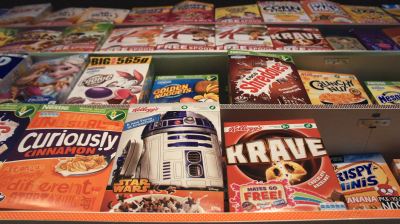 Admittedly I had difficulty finding the place. First I walked past the narrow entrance right next to a larger corner shop. Their sign is unobtrusive and easy to miss. The cafe itself is small (although there is more seating downstairs) and stuffy, despite the staff’s desperate attempts to cool the room with several fans. Even with the airlessness (and probably adding to it), a long queue serpentines across the crowded room and chatter fills the air, testifying of the immense popularity of the place. The queueing is retrospectively not a bad thing; it gives you just enough time to inspect the massive selection of cereal (around a 120 different types), whose boxes fill up 2 of the 4 walls. You can even choose by region if you prefer, between US, UK and global favourites. If you can’t make up your mind, there are several cocktails dreamt up for you to select from. Once you managed that, picking a type of milk out of the 30 offered is not that difficult. Also toppings range from fresh fruit to coloured sugar pellets. Oh, Pop Tarts anyone, to round up your meal with? There are only 13 different flavours.