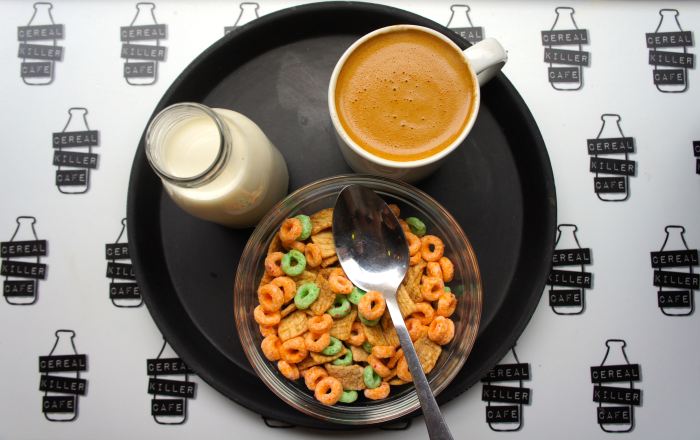 When it comes to restaurants/cafes I generally think there’s nothing new under the sun. Nowadays not a lot of new places make it in the still tough economical climate, and opening a new venue is almost always about the how, not the what. On the other hand I like being pleasently surprised. I like fresh, I like new, creative, sometimes even outrageous. Enter Cereal Killer Cafe in London. A place exclusively serving cereal. All kinds imaginable. When I first read about the opening, I was sold on the idea alone. An naturally my curiosity was peaked.