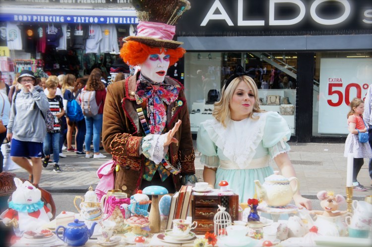 And indeed you must be a little mad to venture into Camden Town on a Saturday. Loud and crowded doesn’t come close to describing the market street. Tattoo parlours, bold and ostentatious store fronts decorated with giant scorpions and gothic angels dominate the view; vendors, street performers, and buskers are busying themselves to provide more allure to the abundance of tourists.