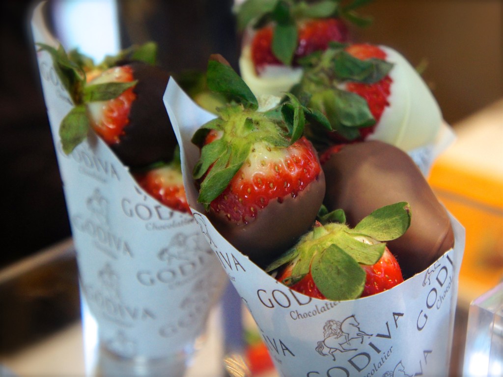 Well, not a cherry in this case, but a handful of ripe strawberries. They are always the star of the season and delicious as they come. So is Godiva chocolate. Combine the two and you have a definite winner. For the perfect combination sip some bubbly with it, preceding or following some carnal pleasures (strongly recommended for private enjoyment).