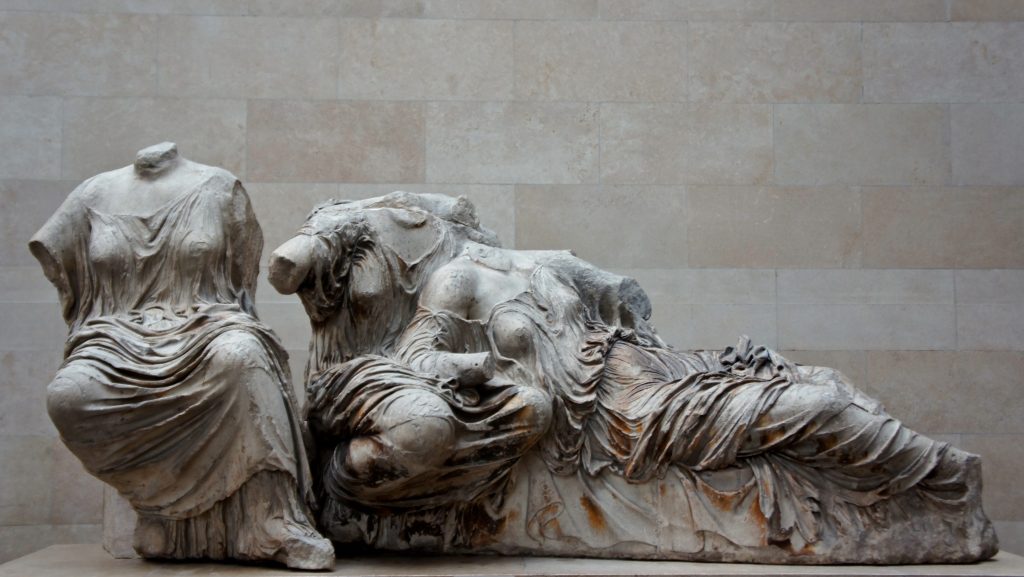 Art has a long and painful history. Many ancient artifacts have been illegally removed or poached throughout the ages and many sacred architectural structures have been disrespected or destroyed so they finally fell into ruin over the centuries. The Parthenon on the Acropolis of Athens is no exception. The temple was originally dedicated to the goddess Athena and was the centerpiece of the building project dating back to about 2500 years ago. The Parthenon was later converted into a church, a mosque, and was used for gunpowder storage before a large explosion blew off the roof in the 17th century and left it in ruins.